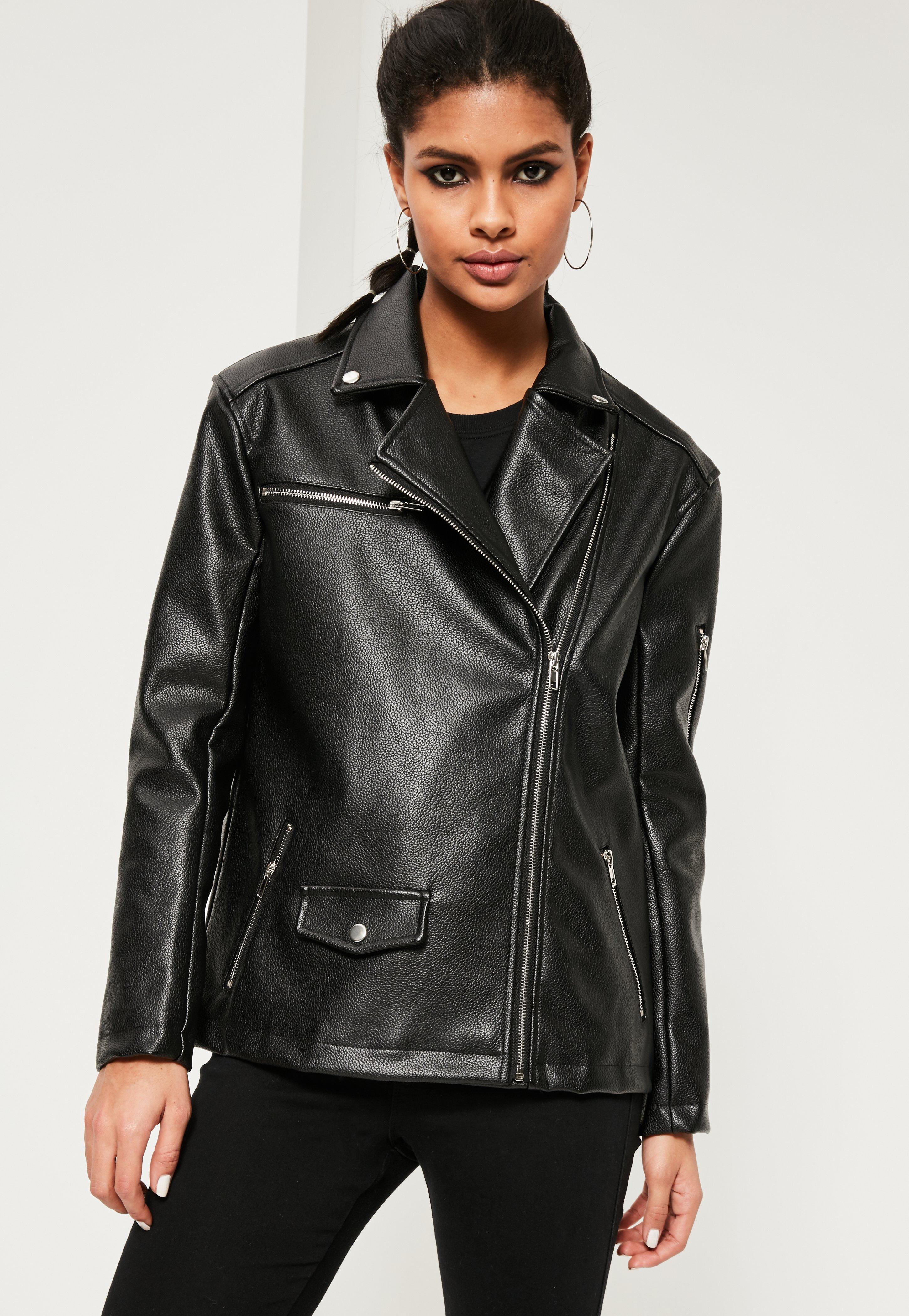 A good leather jacket is hard to find, but luckily, we've did just that. Add an express black vegan leather moto jacket over a lacy cami or silky top with black jeans. You can revamp the wardrobe with this women's black oversized biker leather jacket. These oversized leather jacket are available in multiple styles and designs to gift your outfits the variety whether you want oversized leather jacket to wear during your prom, attending a funeral.