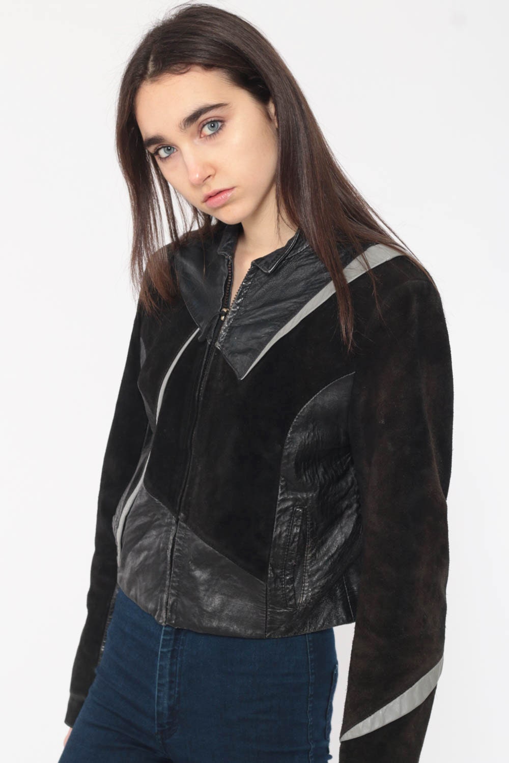 Womens cropped denim jean jacket long sleeve button down basic classic jacket coats. Sale price $79.55 $ 79.55 $ 113.65 original price $113.65. Vintage 80's chia made in korea black leather suede cropped jacket medium kaimonogirl. Women's chic black cropped leather biker jacket.