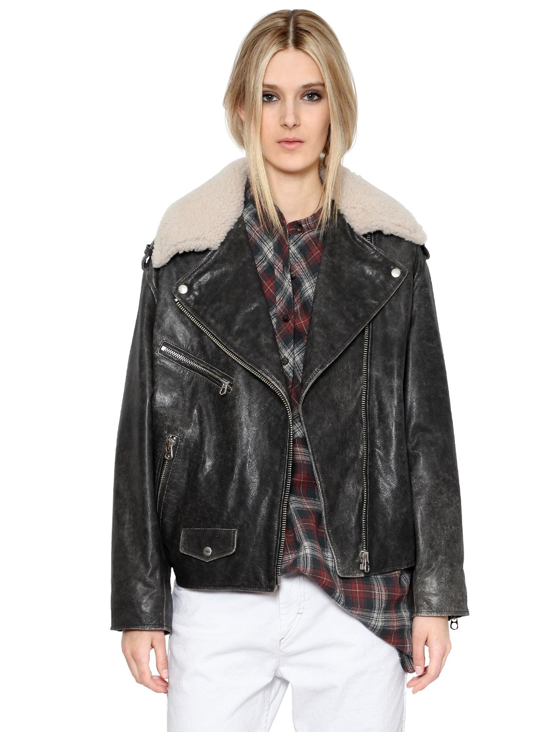 Black Leather Jacket With Shearling. Features front flap with ykk zipper and buttons, four exterior pockets including two flap. Buy alberto shearling black leather jacket for men made of sheepskin leather. 4.4 out of 5 stars.