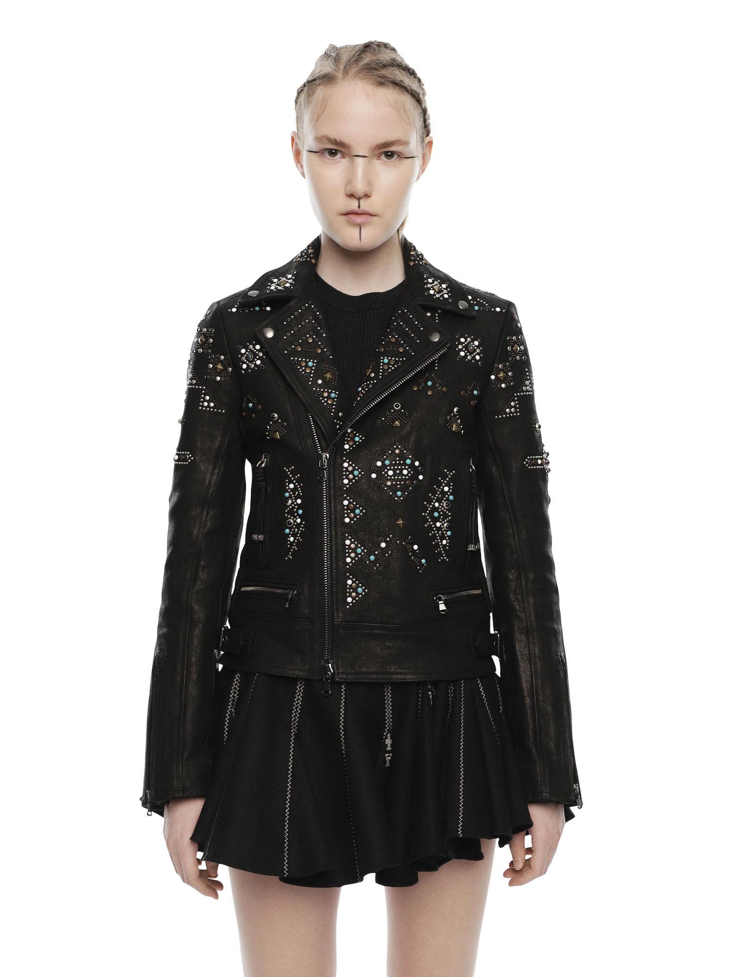 Only 2 available and it's in 1 person's cart. Enhanced by its various bright details, this black biker jacket retains that quintessential biker style. Alexander mcqueen studded leather blazer $3,374 $4,820. You can buy a black studded faux leather jacket and complement it with a fitting gothic dress.