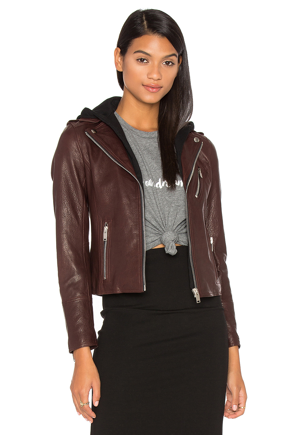 Gallery of Black Leather Moto Jacket With Hood
