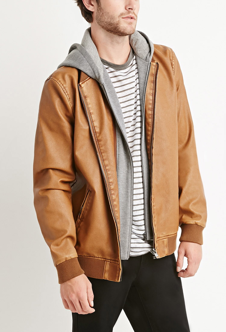 Brown Leather Jacket Hood. Free shipping by amazon +2. 4.3 out of 5 stars. Womens faux leather jacket motorcycle jacket short pu jacket with removable hood.