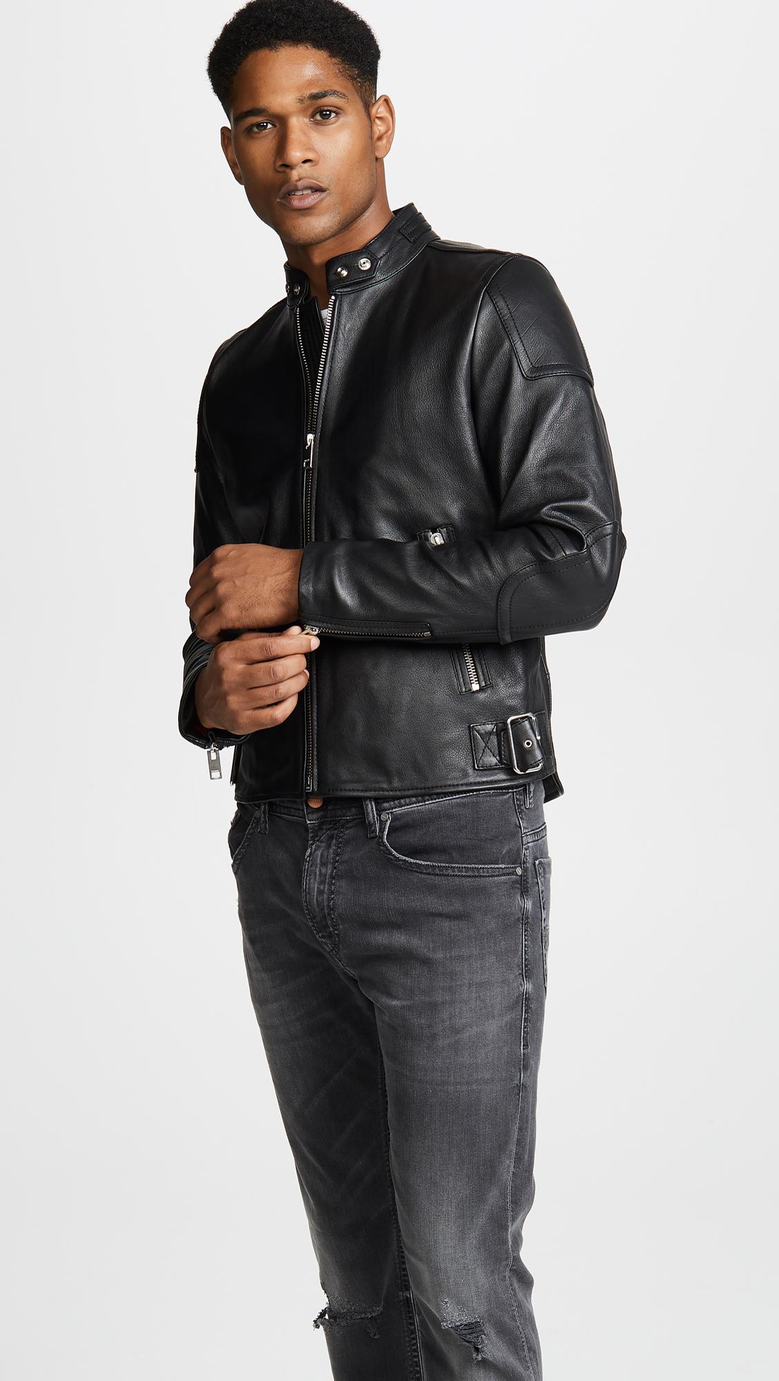 Diesel Black Leather Biker Jacket. $995.00 new add to wishlist olive green leather bomber jacket with sleeve pocket. $995.00 new add to wishlist. $798.00 $478.00 unisex use code: