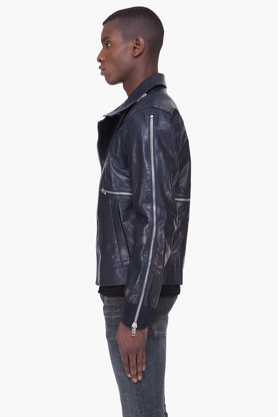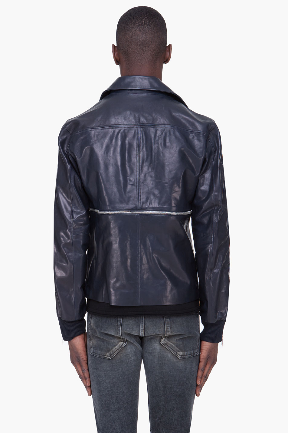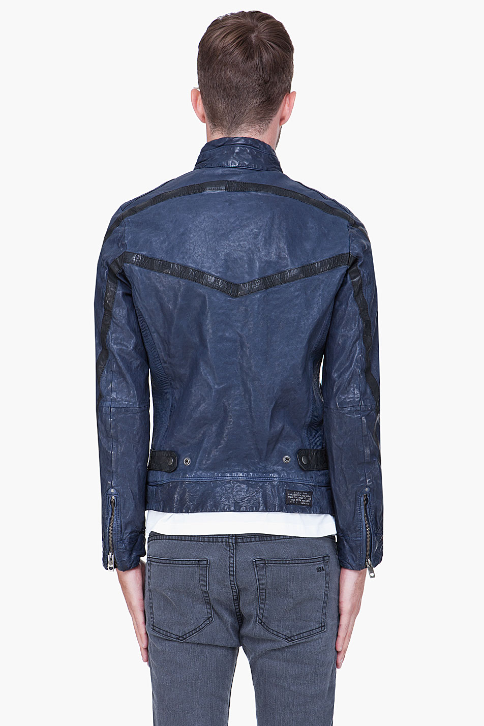 Lyst - Diesel Navy Liris Leather Jacket in Blue for Men