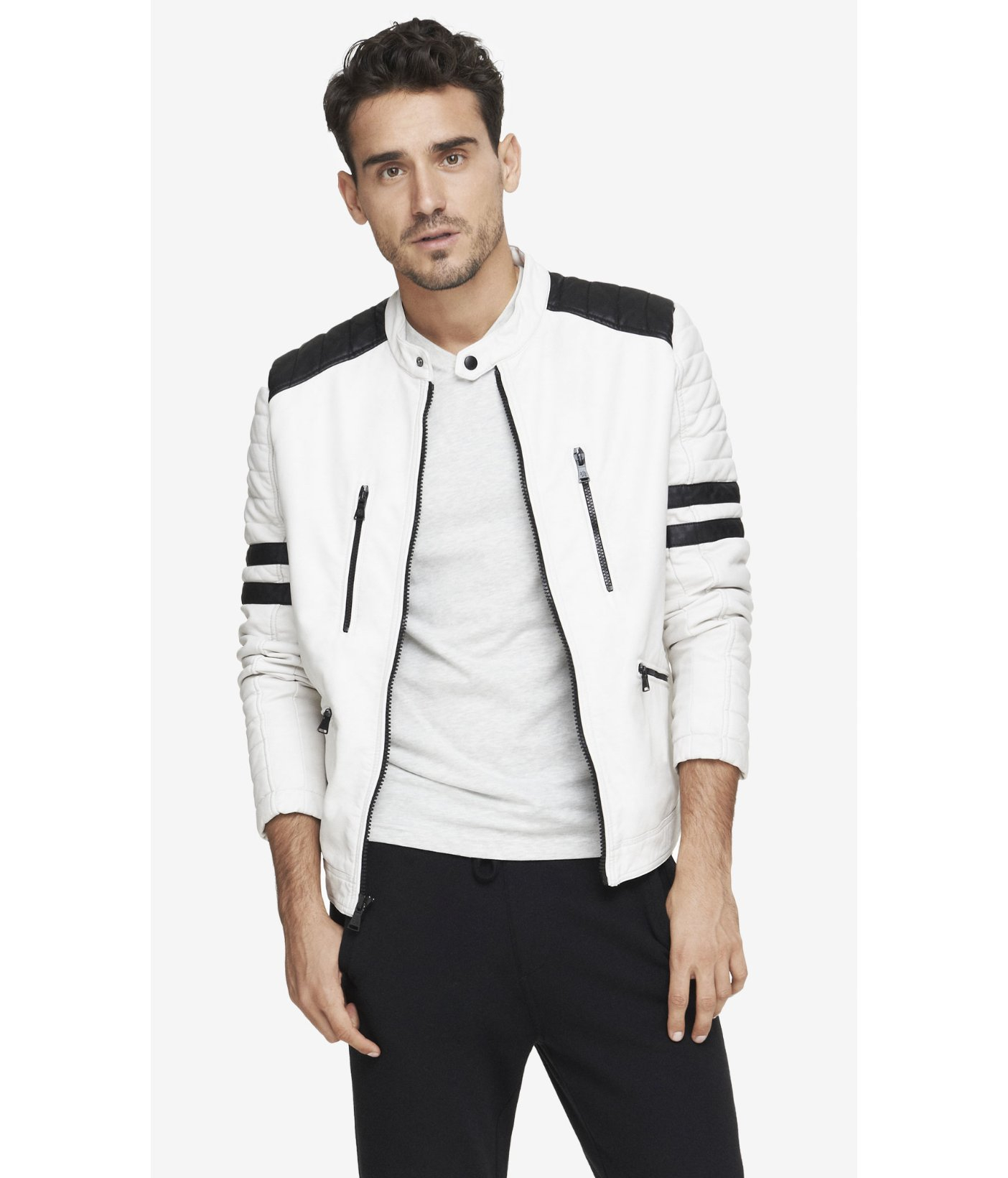 Express White Leather Jacket Mens. Get the best deals on mens white express jackets and save up to 70% off at poshmark now! The express white leather jacket on offer are stylish and affordable to help you save money while looking awesome. Shop various styles like leather or black bomber jackets and pair with jeans and a flannel this winter season.