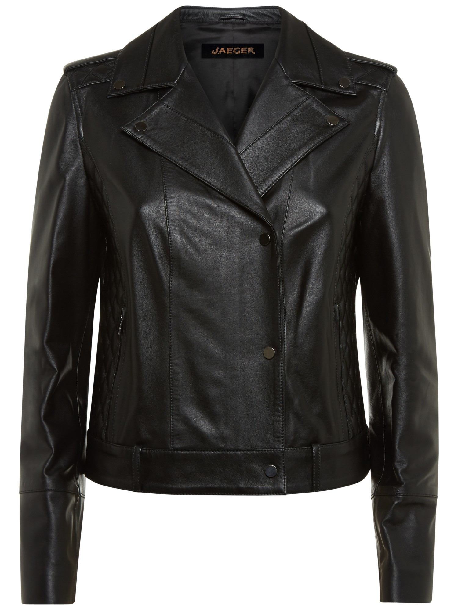 Jaeger Black Leather Biker Jacket. Jaeger women's green padded coat with detachable hood. Invest in a this contemporary biker jacket from jaeger for a layering staple to see you through the seasons. Classic metal hardware ensures an authentic.