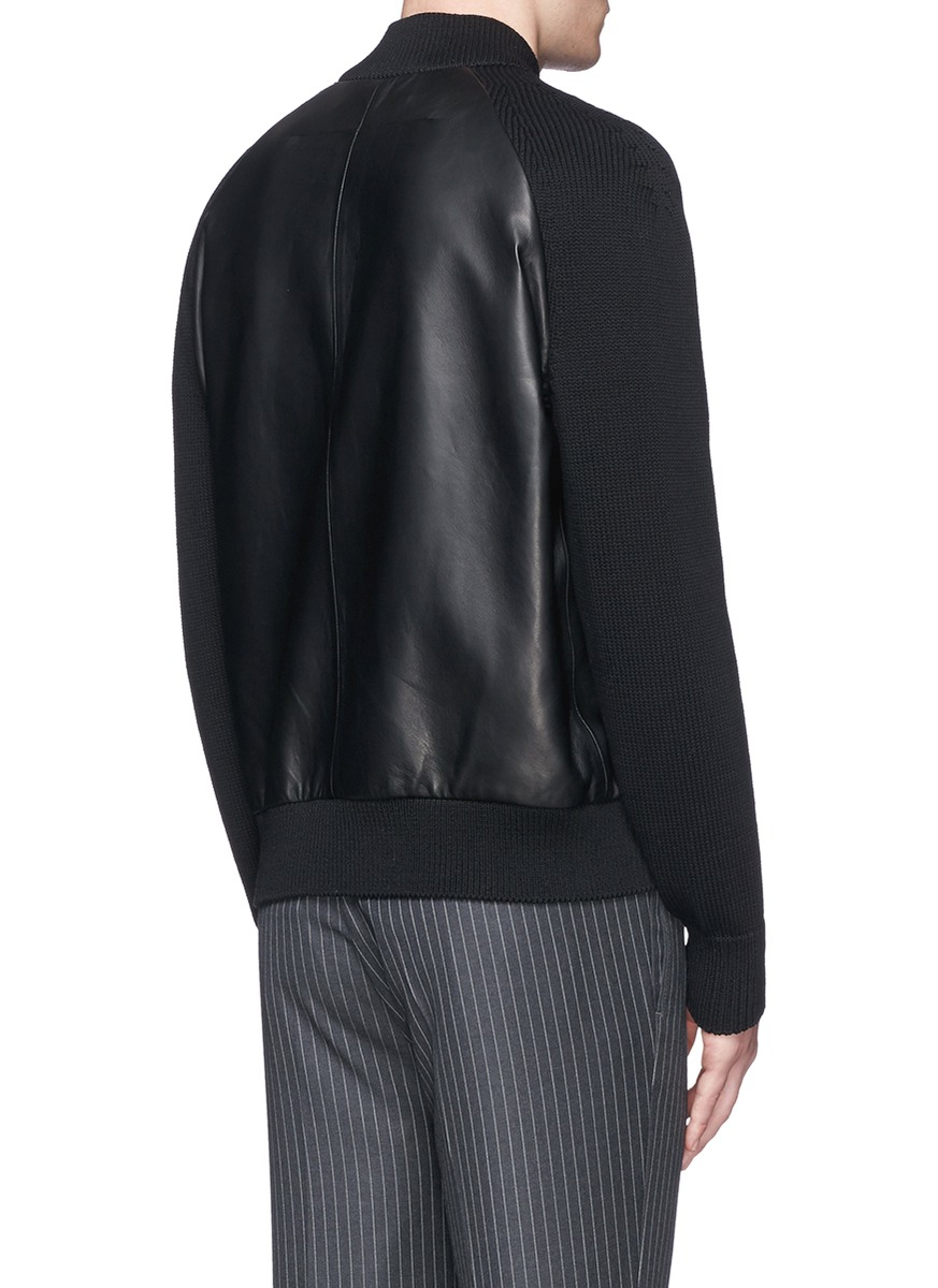 Knit Bomber Leather Jacket. Thom browne engineered rwb stripe cotton blend bomber jacket. Chest side zip pockets, two waist zip pockets. Womens up to speed vegan leather jacket with rib knit undersleeve.