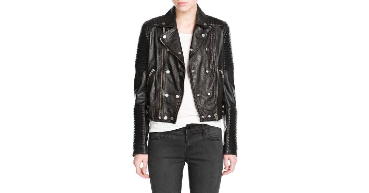 Mango Black Leather Biker Jacket. Shop mango leather biker jacket at asos. Leather biker jacket with epaulettes and asymmetric zip fastening through back. Shop women's mango leather jackets.
