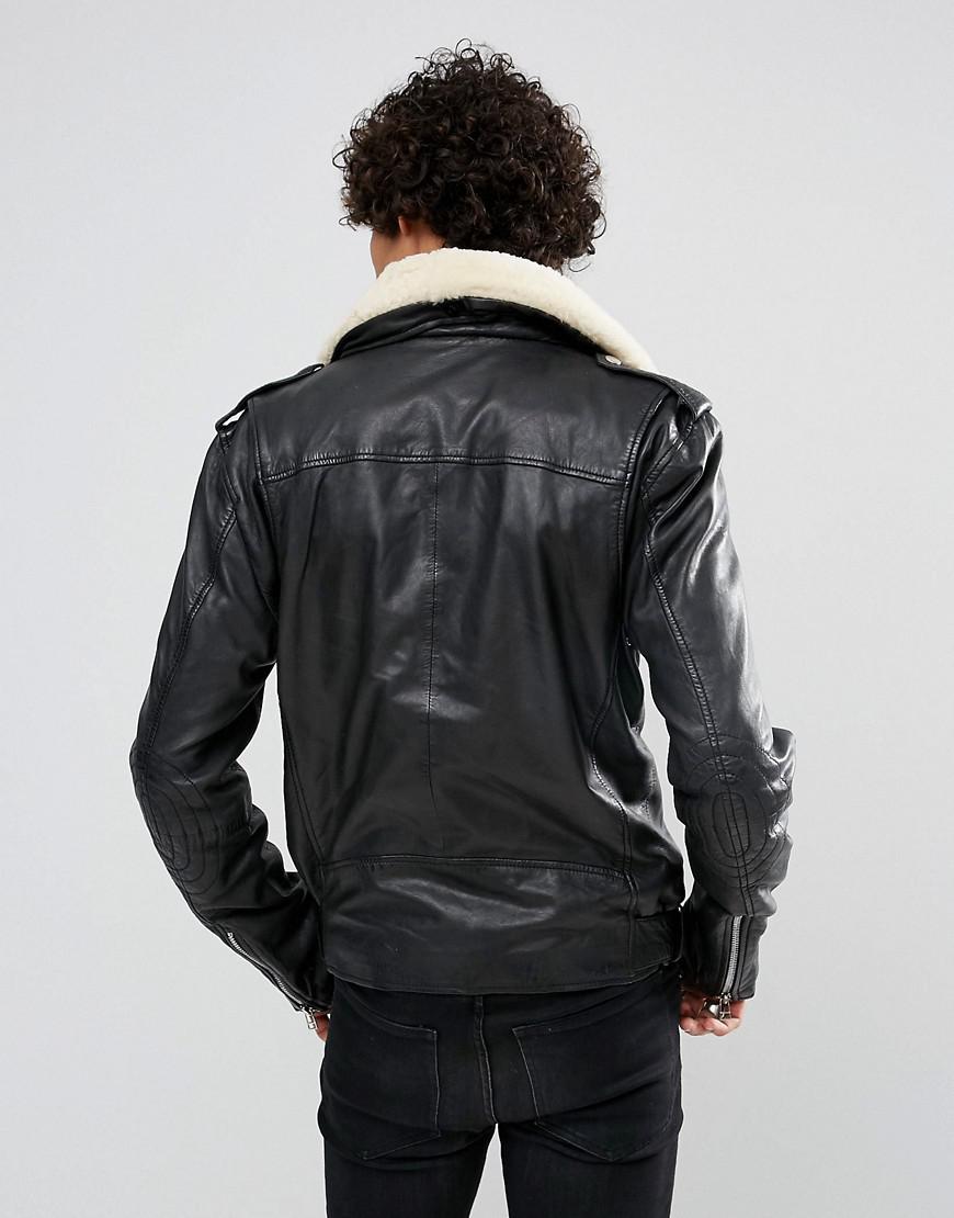 Gallery of Mens Black Biker Jacket With Fur Collar