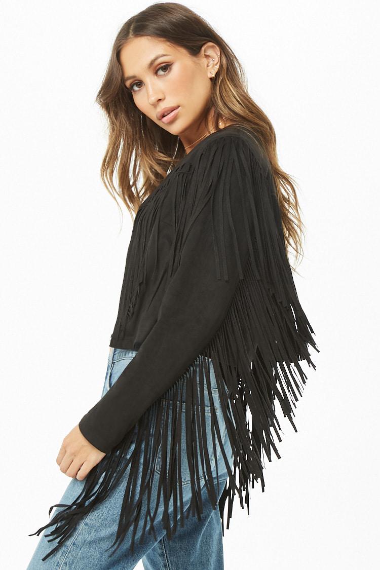 Plus Black Faux Leather Fringe Crop Jacket. 4.0 out of 5 stars. Balmain cropped tweed jacket w/fringe details $2,750. Save 15% with coupon (some sizes/colors)