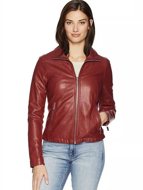 Leather skin red women ladies brando style synthetic leather jacket. Designed for a comfortable fit this corbani genuine leather jacket features back facing zippered cuffs and a classy stitch design at the back bottom. Keep warm in our short, mid and long length coats, jacket and puffers, many of which.