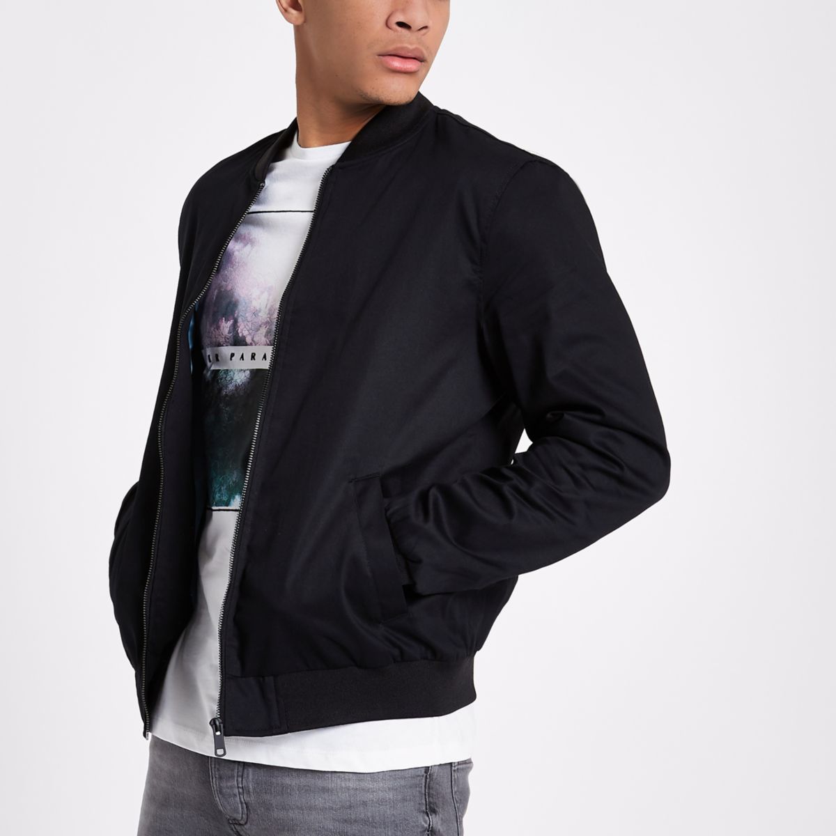 Gallery of River Island Mens Leather Bomber Jacket