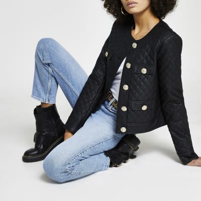 River Island Real Leather Jacket In Black. To give you the best experience on asos, and to make sure the asos ads you see on other sites are relevant. Blue pearl embellished denim jacket. Black faux leather hooded zip up jacket.