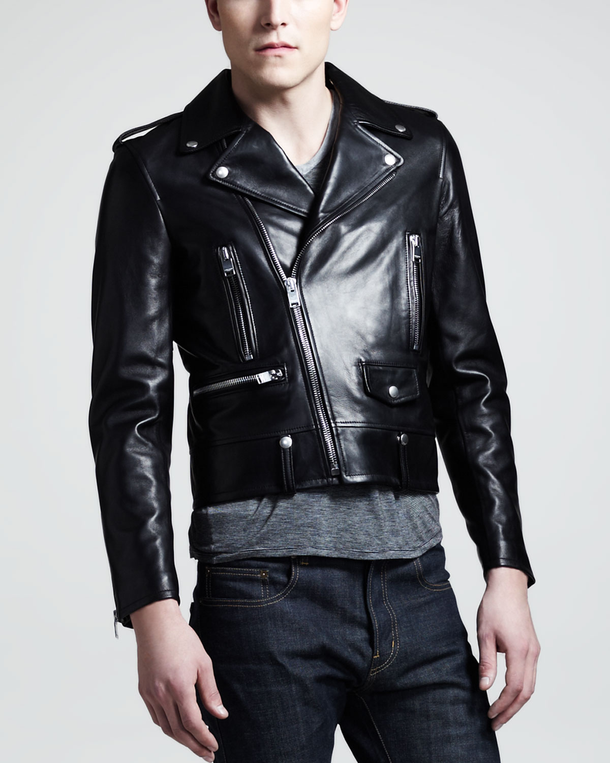 Ysl yves saint laurent jacket classic flight jacket men's black leather vintage. The perfect leather jacket for your age. Shop saint laurent mens collection.