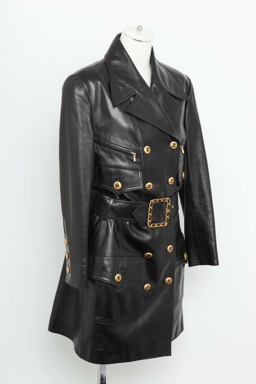 Vintage Black Leather Trench Coat. Excellent preowned condition with minimal signs of overall wear. Showy 007 vintage 80s jacqueline ferrar sz m long black leather spy trench coat. Women's vintage 70s leather belted trench coat jacket brown burnt sienna m/l.